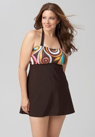 In other summer news… I bought a new swimsuit this week. It’s been well over 5 years since I bought a swimsuit and, well, my body has changed quite a bit since then. I really wasn’t looking forward to shopping for one, but it wasn’t as bad as I was expecting. The new tankini/halterkini’s that they have now are really nice, but, I never found one that made me feel comfortable. I finally settled on a cute swim dress from Avenue. They were having a 50% off sale, so that was a bonus. Here’s a picture of it: